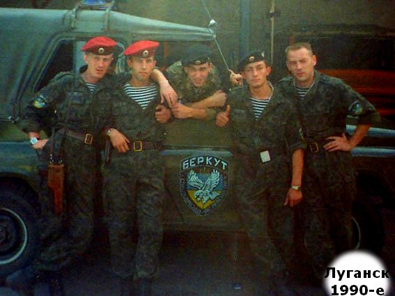 (На фото бойцы луганского «Беркута» в черных и краповых беретах с заломом на правую сторону. Примерно 1994-1995 гг.)