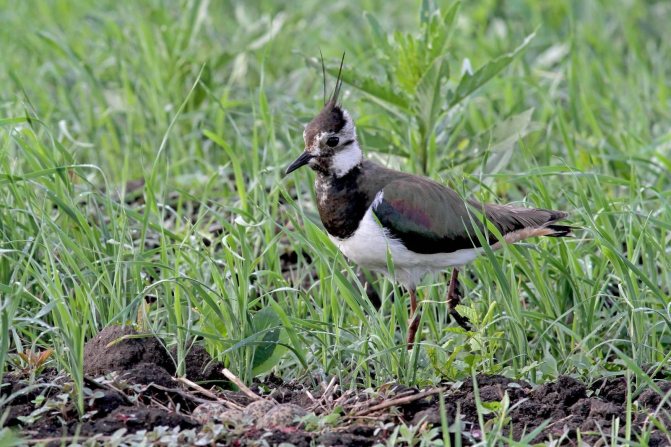 Чибиса легко узнать по контрастному оперению и озорному хохолку.