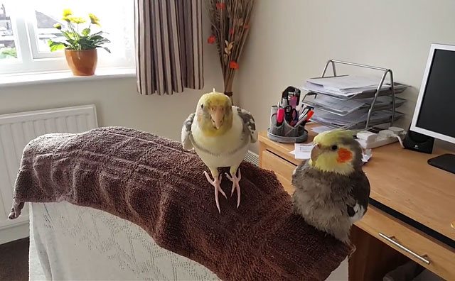 - Стресс — причина заболеваний. Возле клетки не следует громко кричать, шуметь, хлопать в ладоши. Попугаи — любопытные птицы, но постоянный шум заставляет их переживать. Если в доме есть животное, не допускайте его к попугайчику. Пернатые не любят таких знакомств.
