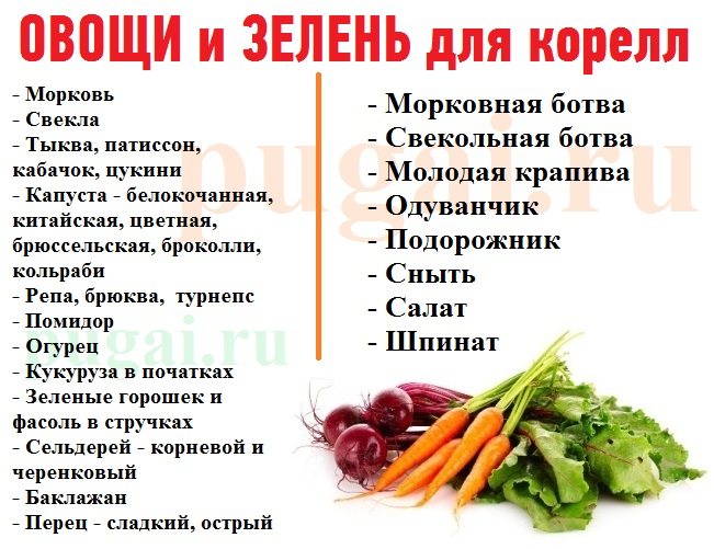 Морковь перед употреблением следует нарезать или натереть на терке. Также кореллам можно и нравится есть такие полезные овощи, как стручковая фасоль, горох, кукуруза в початках, кабачки, помидоры и брюссельская капуста.