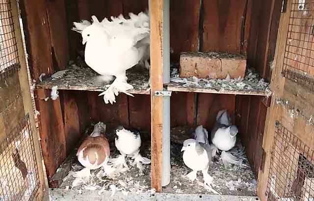 Чтобы содержать этих пернатых в условиях дома в частном секторе, требуется оборудовать просторные клетки из крупной сетки или деревянные вольеры. Летом наиболее оптимальными будут открытые площадки. При этом важно обустроить их внутреннее пространство с жердочками, ячейками для отдельных птиц. Необходимо установить удобные кормушки, поилки. Кроме того, понадобятся ванночки для купания голубей.