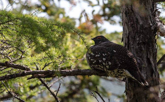 Перерыв в питании делает ненадолго, примерно на полчаса дремотного отдыха. А ближе к вечеру слетает с дерева, зарывается в снег или густую опавшую листву до рассвета. Утром она снова принимается за любимое занятие – поглощение хвоинок. Летом ее меню разнообразнее. В него входят ягоды, семена из коробочек мха, листья кустарников, иногда насекомые.