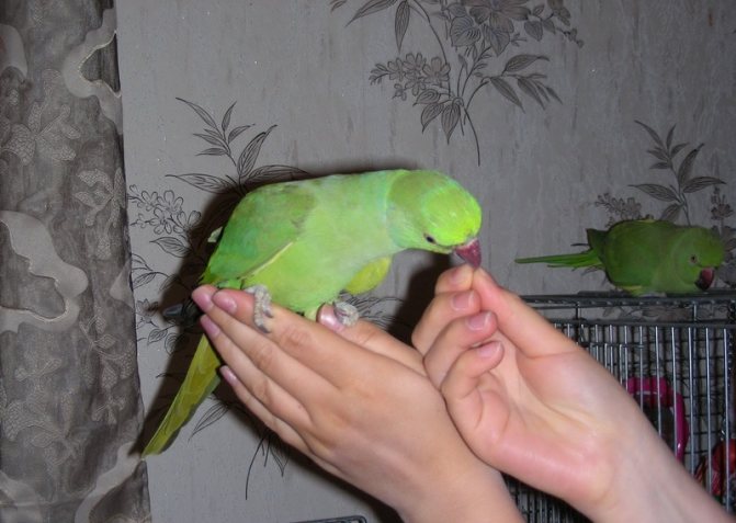 При покупке птицы не следует сразу брать ее на руки, гладить. Вначале дайте попугаю привыкнуть к новому месту обитания. Насыпав корм, следите на расстоянии за тем, как попугай будет питаться. С каждым днем сокращайте дистанцию. Через 5-7 дней пернатый привыкнет к вашему присутствию и уже не будет пугаться. Еще через неделю можете осторожно погладить птицу или попробовать покормить с рук.