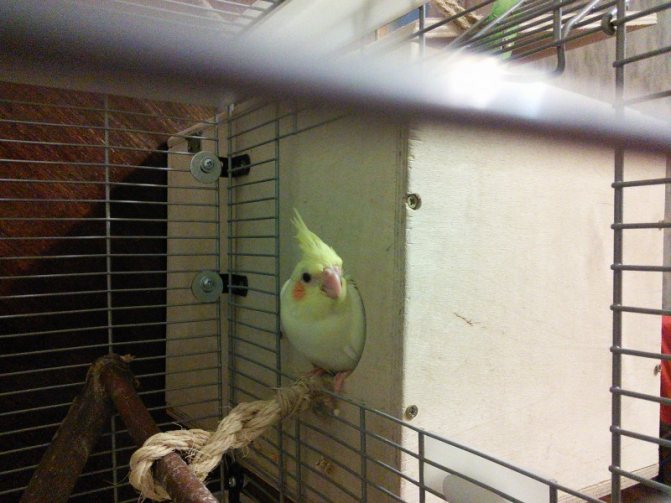 Внимание! Птичий домик достаточной площади служит надежным убежищем, в центре или углу которого корелла может спрятаться от неприятеля – кошки, собаки, незнакомого человека.