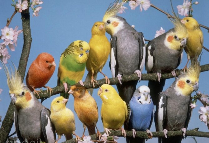 Канарейки хорошо относятся к маленьким птичкам, в большинстве случаев они с радостью примут в свой дом небольшого, а главное спокойного попугая.