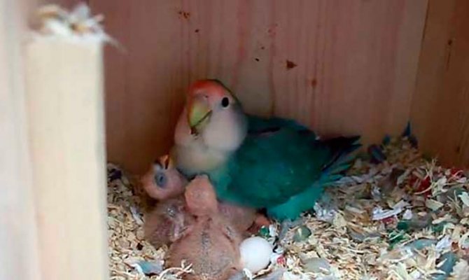 После спаривания, где-то через одну неделю, самка начинает откладывать яйца. Их количество может быть не больше восьми. Процесс развития потомства составляет где-то 3 недели, после чего на свет появляются птенцы попугаев неразлучников. Когда начинается этап выкармливания птенцов, в рационе питания должны присутствовать высокобелковые компоненты, рассыпчатые каши, пророщенная пшеница и овес. Другими словами, в этот период птицам необходимо обеспечить усиленный рацион питания.