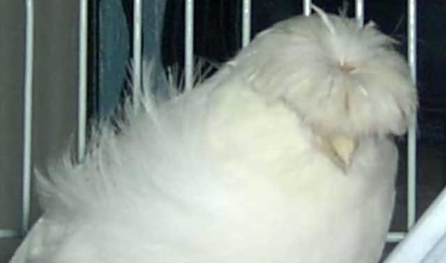 У английской хохлатой очень пушистая «шапка» на голове. Отросшие перья хохолка приходится подрезать, чтобы птица могла видеть. Еще эту породу называют крестед, что в переводе с английского означает «украшенная хохолком».