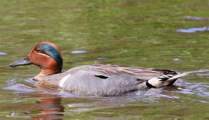 Еще один представителей семейства утиных, добывающий себе пищу на дне водоемов, заслуживающий особого внимания. Мраморный чирок отличается от своих сородичей не только внешним видом, но и образом жизни. Это сравнительно небольшая птица, достигающая всего 600 г. Окрас оперения уток и селезней одинаково буро-серый. Эти птицы имеют компактное аккуратное тело.
