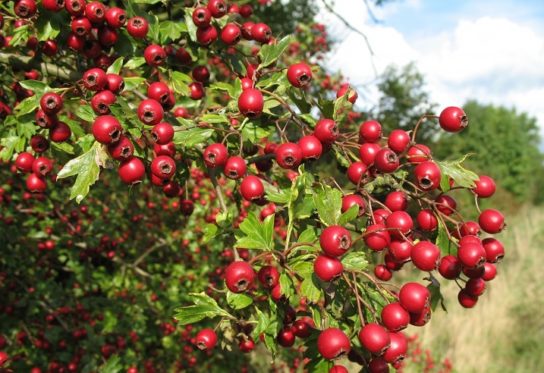 Боярышник является кустарником и принадлежит к семейству Розовых. Хорошо известен своими лечебными свойствами и имеет насыщенно красные плоды, похожие на шиповник только форма круглее.