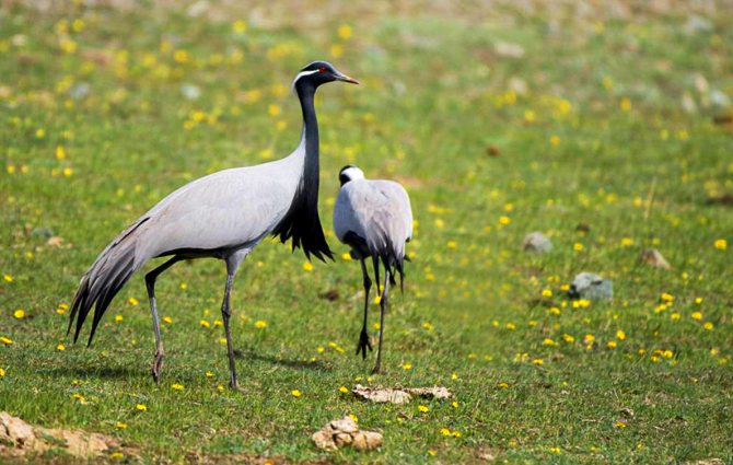 Пара журавлей-красавок в степи