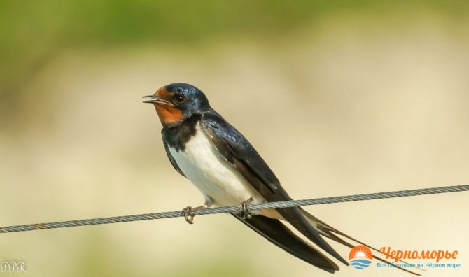 Еще одна довольно распространенная птица в Краснодарском крае — это касатка или попросту ласточка. По размеру она чуть больше воробья, спинка черная, а брюшко белое. Зимуют ласточки в Азии или Африке. Питаются насекомыми, гнезда лепят исключительно из глины. Обычно их можно увидеть сидящими на электрических проводах.