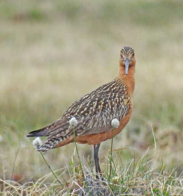 — западный большой веретенник, номинативный подвид. Гнездится в континентальной Евразии на восток до Енисея. Голова, шея и грудь бледно-рыжие. - L. l. islandica