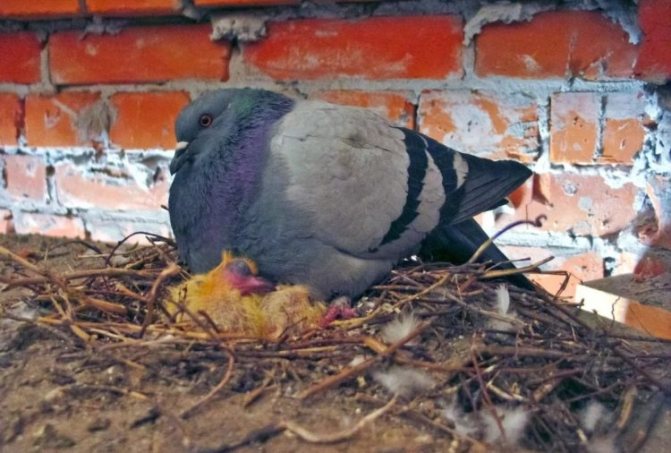 Если голубка высиживает еще одну вкладку, то самец сам кормит предыдущее потомство.