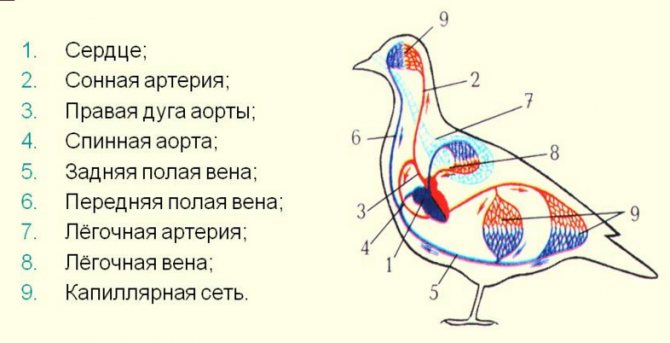 Органы кровеносной системы – сосуды (артерии, вены, капилляры) и сердце. Благодаря сокращению сердца происходит продвижения крови по сосудам. В кровеносном русле птицы выделяют две системы: артериальную, несущую кровь от сердца, и венозную, возвращающую кровь к сердцу. Характерная особенность птиц – относительно большие размеры сердца, что связано с высокой интенсивностью обмена веществ, особенно во время полета. У волнистого попугайчика частота пульса в покое составляет 400-600 ударов в минуту, увеличиваясь в полете до 1000 ударов и выше.