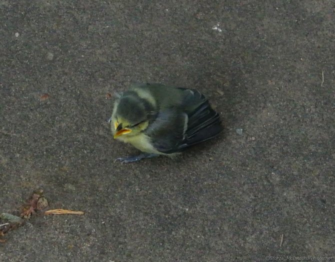 Покажу Вам слетка синицы ,это птенец который был у меня на пути, я его чуть не раздавила. Расскажу как его спасала и даю ссылку полезной статьи в таких ситуациях.