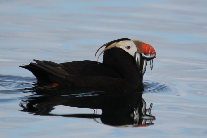 Это была ипатка — птица из породы морских уток, напоминающая топорка, только клюв у нее светлее и нет на голове косичек.