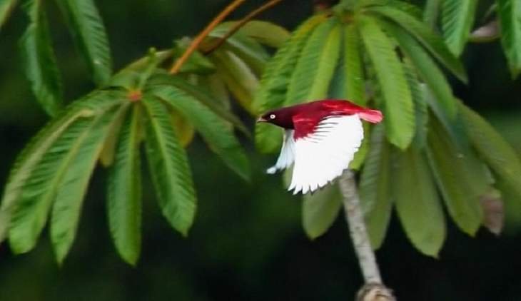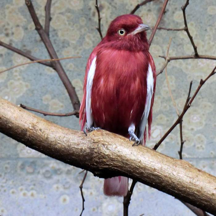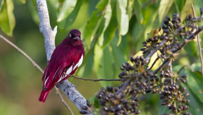 Самки украшенных котинг-помпадур довольно общительные птицы.