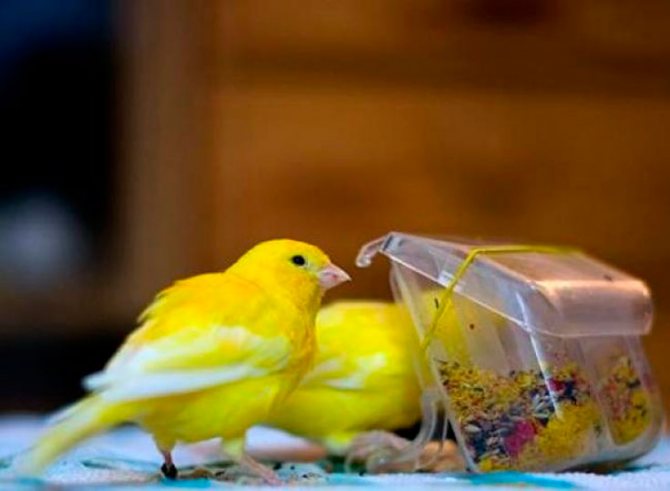 На Канарах пернатые сами заботились о кормах, добывая в нужном количестве зерно, зелень, охотясь на насекомых. Владельцу предстоит разрабатывать рацион, составлять меню для канареек. В специализированных магазинах продают наборы для этих птиц. Стоит обратить внимание, что продукты, приготовленные для других видов пернатых, не подойдут.