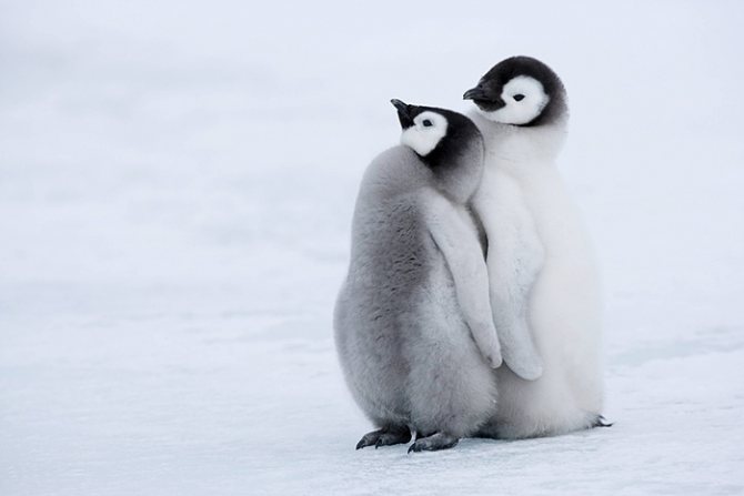Птенец не имеет верхнего слоя перьев, да и три другие представляют скорее теплый пух коричневого цвета. Он согревает малыша, но в воде не спасает. Поэтому до двух лет они не заходят в ледяные воды Антарктики.