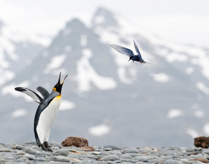 - На суше пингвин очень неповоротлив и довольно часто, резко запрокинув голову, теряет равновесие и падает на спину. Из такого положения подняться самостоятельно птица уже не может, поэтому на многих полярных станциях появилась удивительная профессия – подниматель пингвинов, или переворачиватель пингвинов. Этот человек помогает пингвинам перевернуться и принять обычное для птицы вертикальное положение.