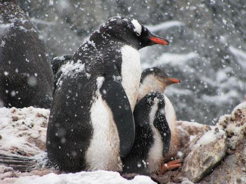 Во время высиживания потомства, родители некоторых видов голодают, теряя до половины собственного веса, другие поочередно направляются к морю в поисках пищи. Отойти обоим сразу нельзя – яйцо мгновенно остынет и потеряет жизнеспособность или кто-то украдёт его. Маленькие пингвины рождаются через 1 – 2 месяца, причём не всем из них удаётся выжить даже в первые часы пребывания на ледяном ветру, при экстремально низких температурах.