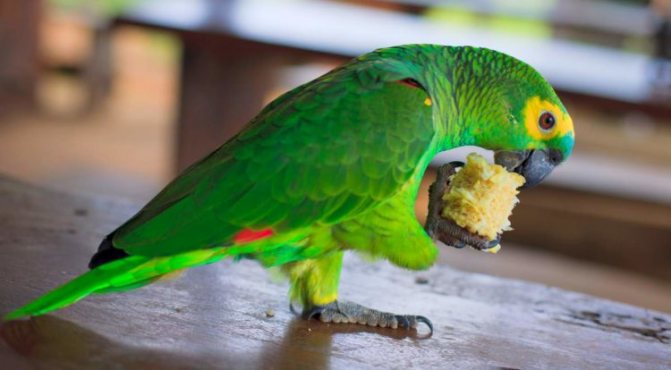 В рационе питания попугая обязательно должны преобладать зерновые смеси хорошего качества. Основные крупы – просо и овес, крупным видам можно добавлять в рацион кукурузу, конопляное семя и подсолнух. Мелким попугайчикам – канареечное семя и некрупный подсолнух. Зимой в пищу попугая добавляют пророщенные зерна, богатые витамином Е, и измельченные молодые листья зелени салата, которые можно выращивать в емкостях на подоконниках.