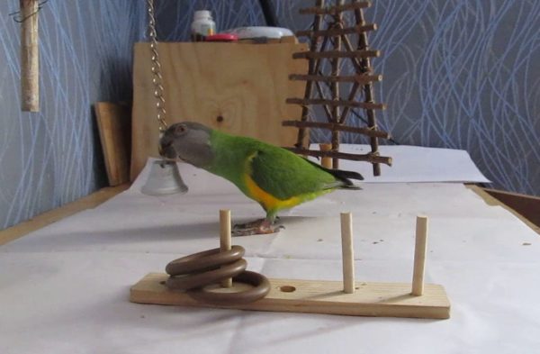 Клетка должна иметь высокий поддон, куда можно засыпать песок, и к тому же наличие поддона будет препятствовать рассыпанию корма. В клетке должны быть жердочки и кольца. Жердочки лучше всего делать из ветвей деревьев твёрдых лиственных пород, так чтобы попугаи могли их погрызть.