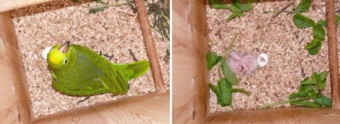 Для разведения попугаев потребуется специальная дуплянка, дно которой выстилается стружкой. В дальнейшем туда будут отложены яйца — 3-4 штуки. И там будут находиться птенцы, пока не подрастут.